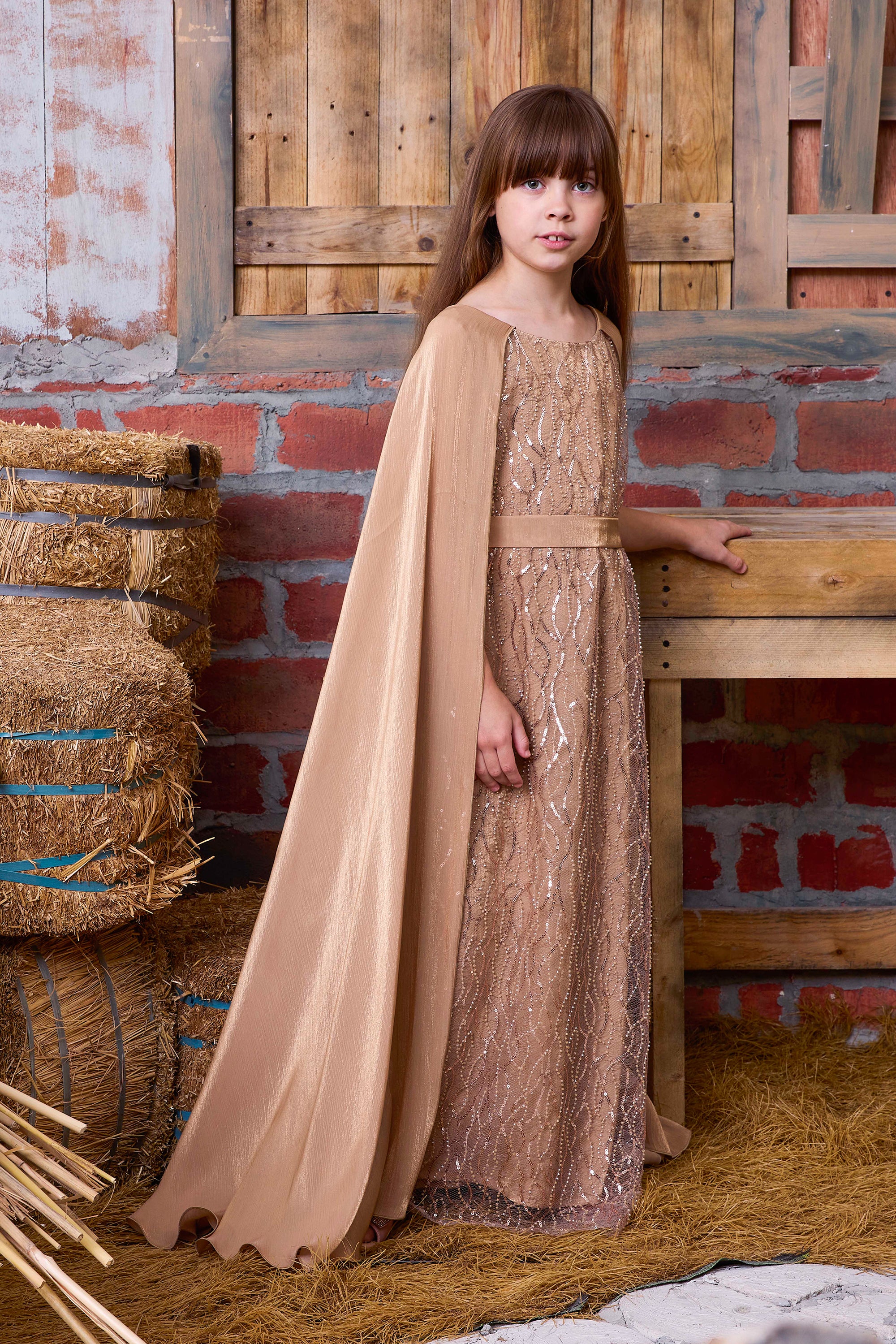 Layered Sleeve Embellished Petal Gown